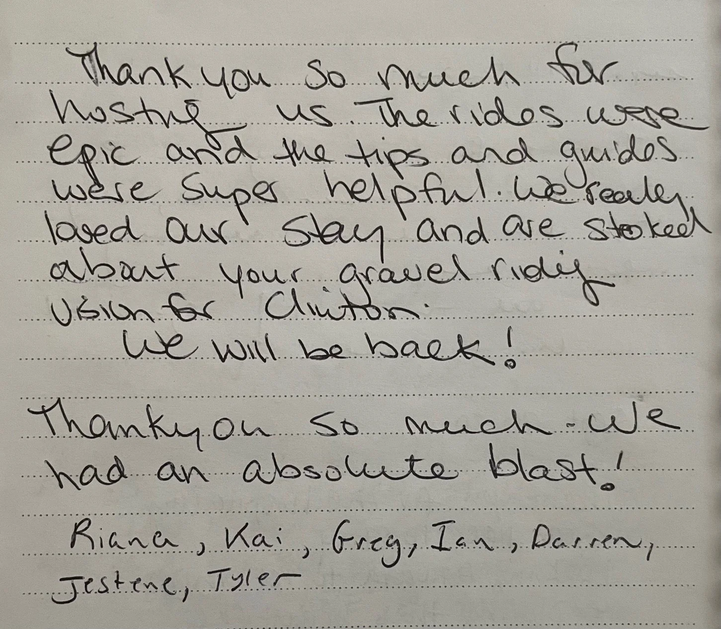 “This is the second time we've been to the Tutti Gravel inn, and we were again blown away by the hospitality of our hosts, the stunning beauty of the Cariboo region, and the challenge of the rides. The cycling experience provided in Clinton rivals the best places we've ever been to, including the Alps, the Dolomites, Colorado and California. Furthermore, the knowledge and support provided by the hosts ensure that your experience will be memorable. The accommodations were of course excellent as well. The place is impeccably clean, very well equipped and super comfortable.”